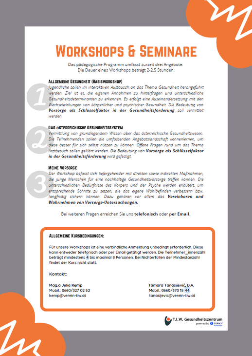 TIW Gesundheitszentrum Flyer Pädagogisches Angebot